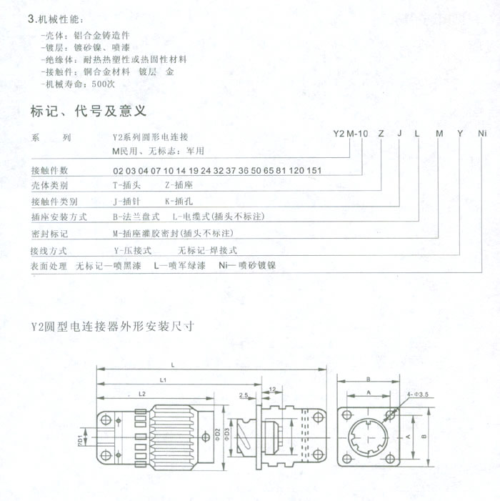 一、Y2系列圓形電連接器(航空插頭)簡介
