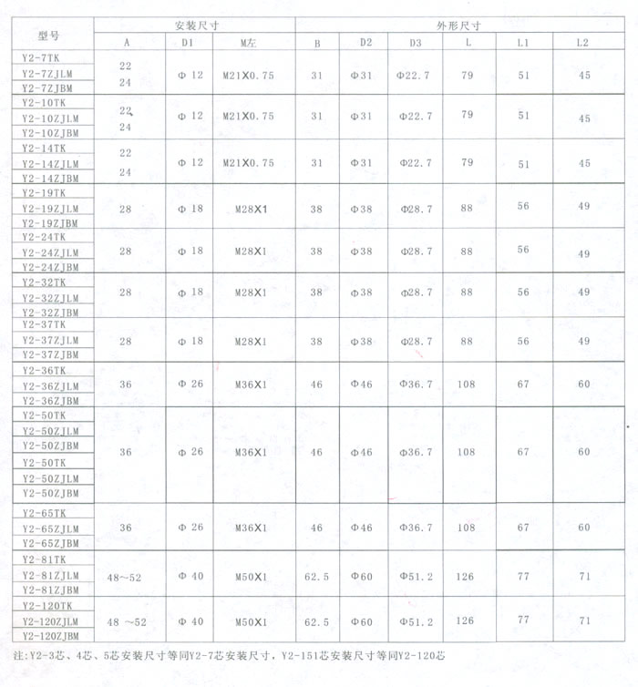 | Y2-65ZJBM | 注:Y2-3芯、4芯、5芯安裝尺寸等同Y2-7芯安裝尺寸。 Y2-大10芯安裝尺寸等同Y2-19芯安裝尺寸。