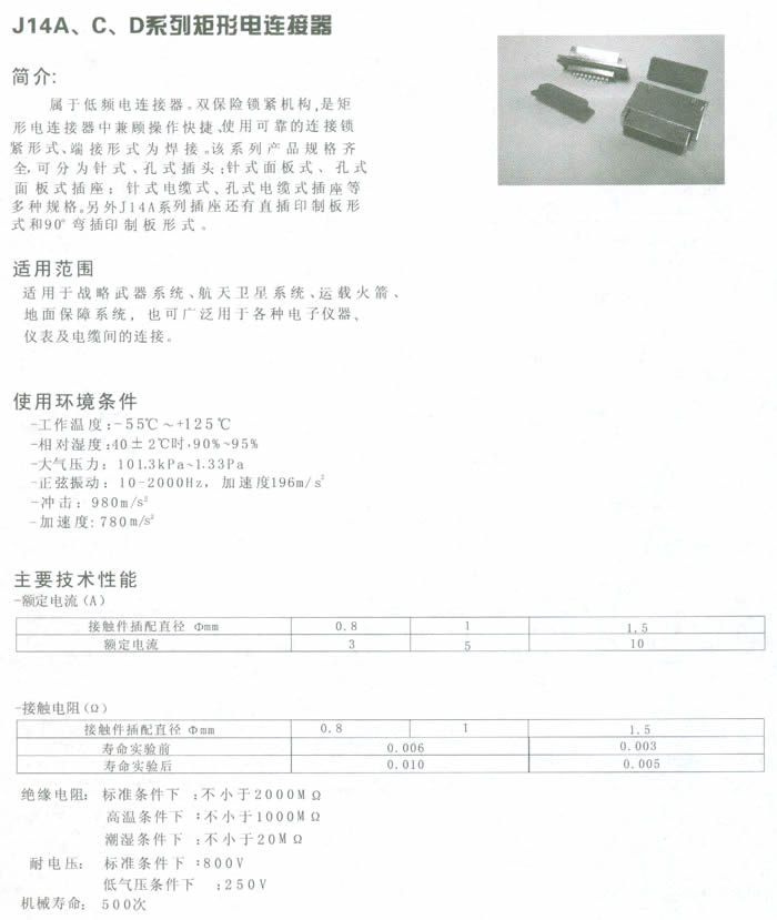 J14A、C、D系列矩形電連接器