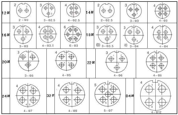 Y50DX系列接點排列(裝針絕緣體插合面正視圖)