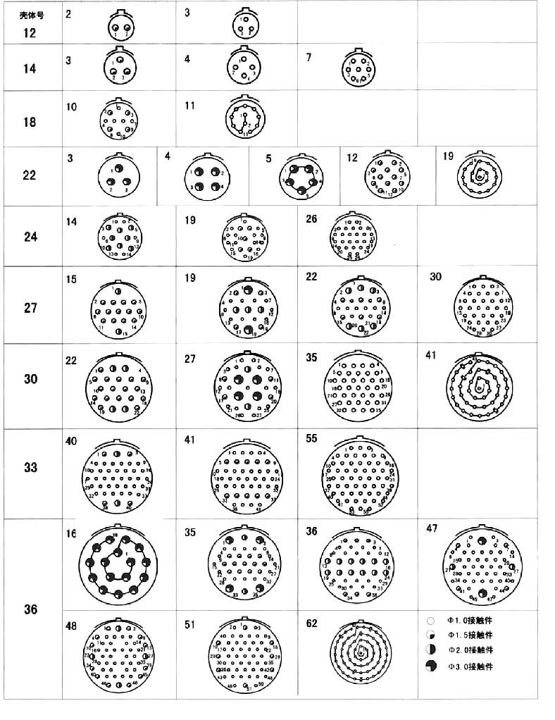 36.5 | XCE系列接點排列(裝針絕緣體插合面視圖)