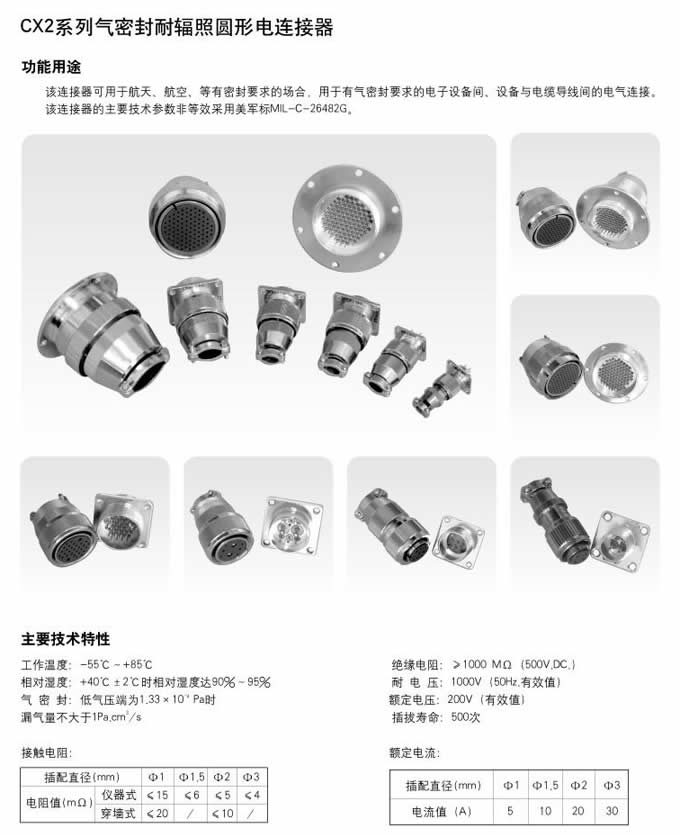 | CX2系列氣密封圓形連接器,主要技術參數非等效采用美軍標MIL-C-26482G。廣泛應用于各種電子儀器、密封容器的子設備與電源之間的電路連接。該系列氣密封連接器的連接方式為螺紋鎖緊連接,使用方便。插座采用玻璃燒結工藝,氣密性好。 密封穿墻電連接器主要用于氣密座艙及其他電氣、無線電設備,需要保持氣密性能穿過墻壁的電連接。 該系列密封連接器目前有七個殼體號,二十九個孔組數,有非密封、密封和密封穿墻等品種。尾部附件有直式壓線式、護線管式、彎式壓線式和屏蔽式四個品種;除以上四種形式的尾部附件外,還設計了 種尾部附件形式,供用戶選用。 ![]() ![]() 更多詳情請咨詢:http://m.bjzztd.com |