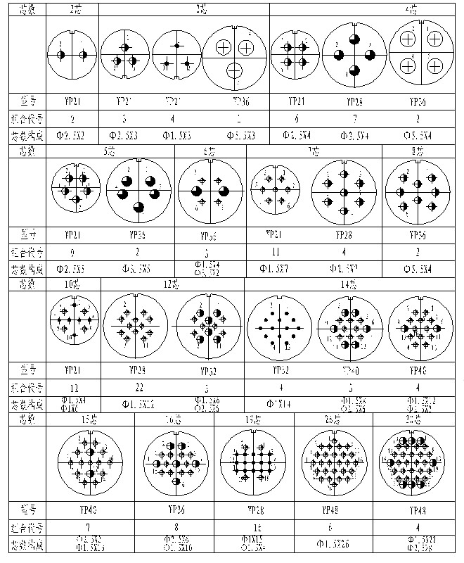 執行標準:Q/321283LSB01-2004《Y(T)P系列圓形電連接器》
