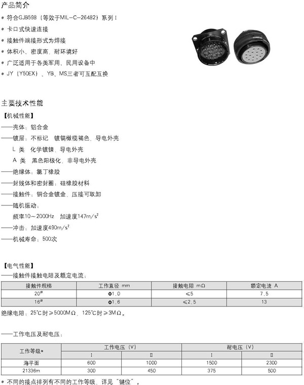 JY/YB/MSⅠ圓形電連接器